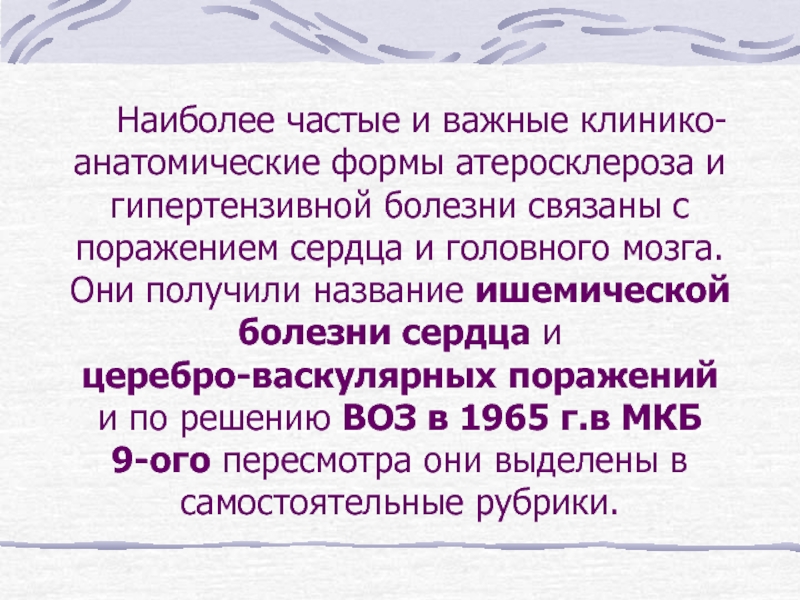 церебро-васкулярных поражений и по решению ВОЗ в 1965 г.в МКБ
