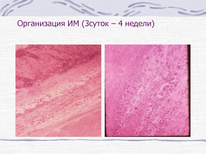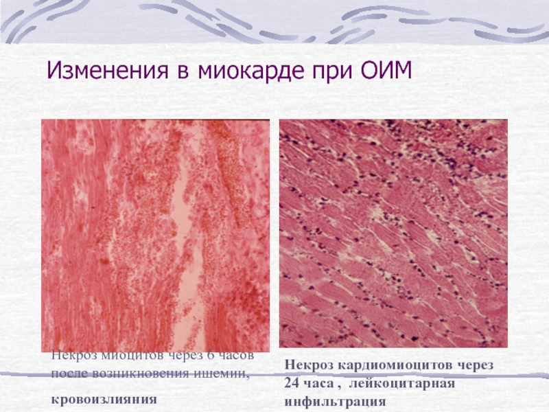 Некроз кардиомиоцитов через 24 часа , лейкоцитарная