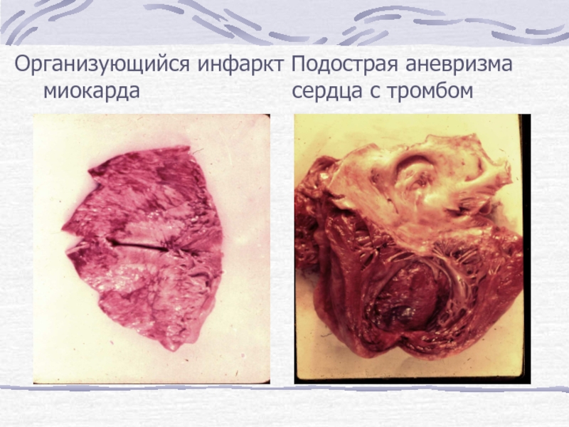 Слайд 20Организующийся инфаркт Подострая аневризма