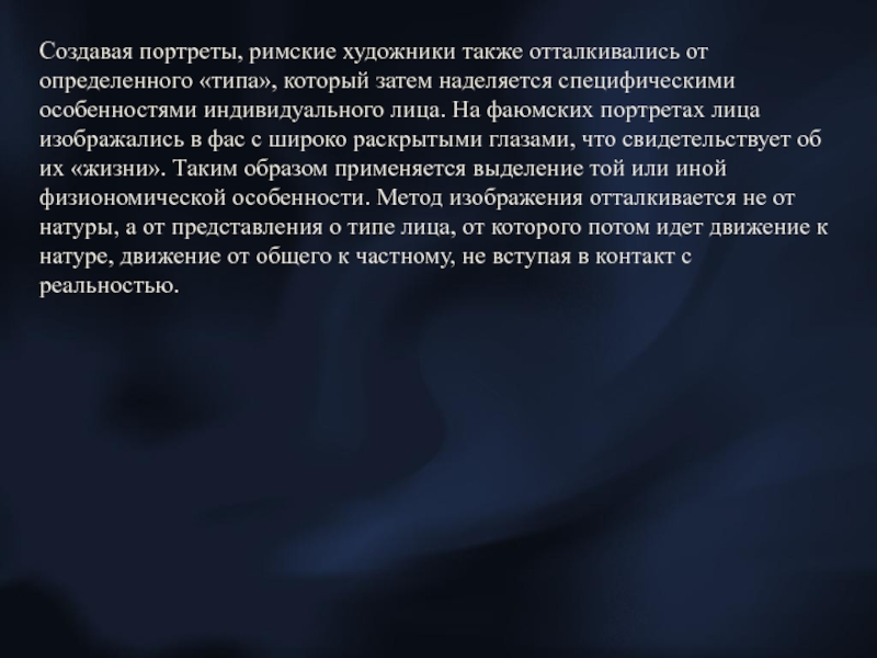 Слайд 22Создавая портреты, римские художники также отталкивались от определенного «типа», который