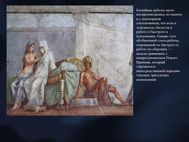 Слайд 20Копийные работы часто воспроизводились по памяти и с некоторыми отклонениями,