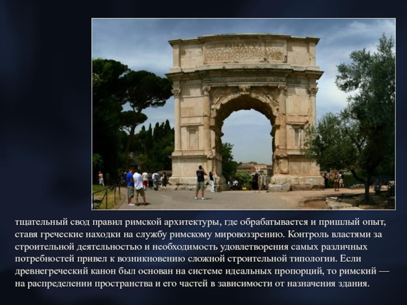 Слайд 4тщательный свод правил римской архитектуры, где обрабатывается и пришлый опыт,