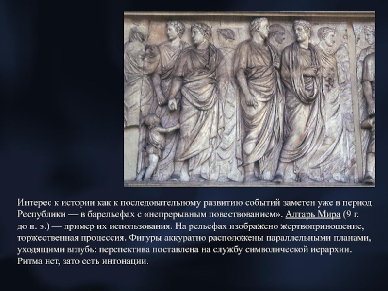 в период Республики — в барельефах с «непрерывным повествованием». Алтарь Мира