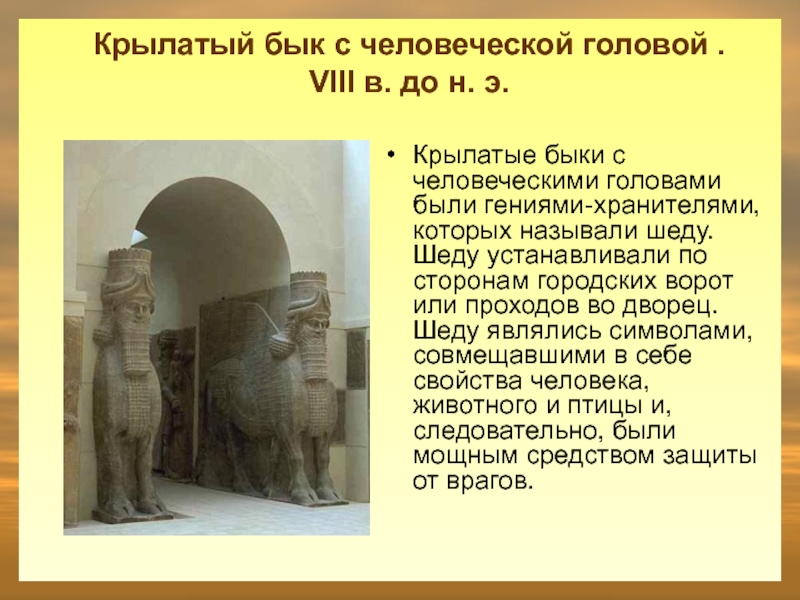 Крылатые быки с человеческими головами были гениями-хранителями, которых называли