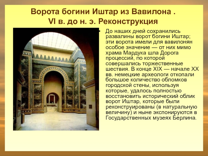Слайд 26Ворота богини Иштар из Вавилона . VI в. до н.