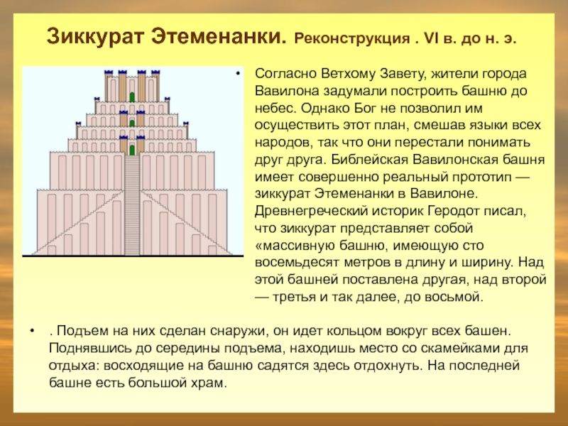 Слайд 23Зиккурат Этеменанки. Реконструкция . VI в. до н. э.