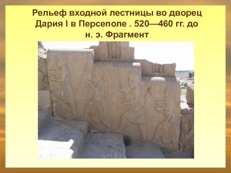 Слайд 31Рельеф входной лестницы во дворец Дария I в Персеполе .