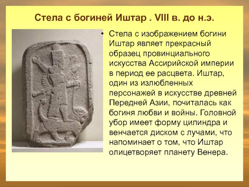 Слайд 20Стела с богиней Иштар . VIII в. до н.э.