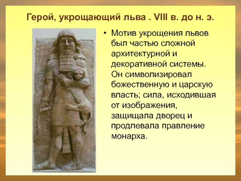 Слайд 18Герой, укрощающий льва . VIII в. до н. э.