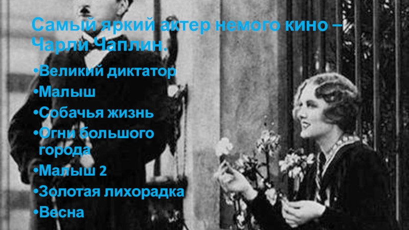 Слайд 13Самый яркий актер немого кино – Чарли Чаплин.