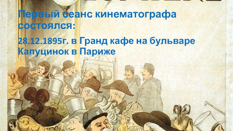 Слайд 2Первый сеанс кинематографа состоялся:
