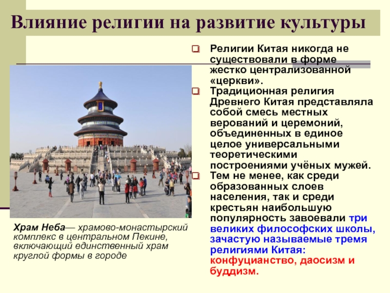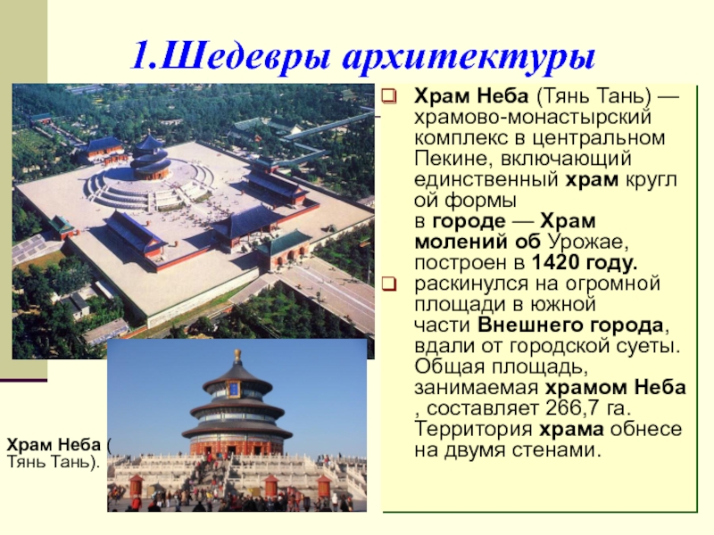 Храм Неба— храмово-монастырский комплекс в центральном Пекине, включающий единственный храм круглой формы в городе