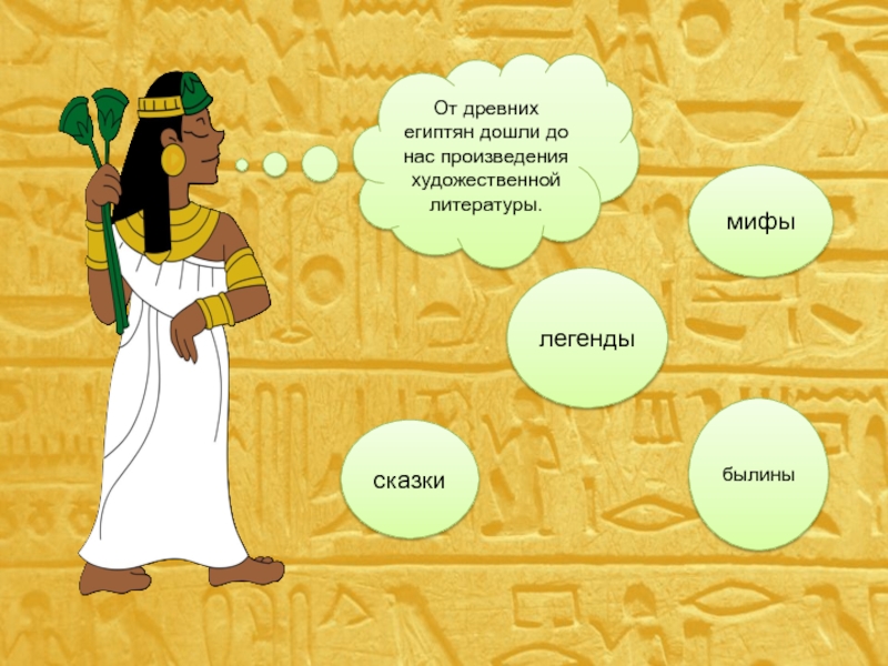 От древних египтян дошли до нас произведения художественной литературы.былинысказкимифылегенды