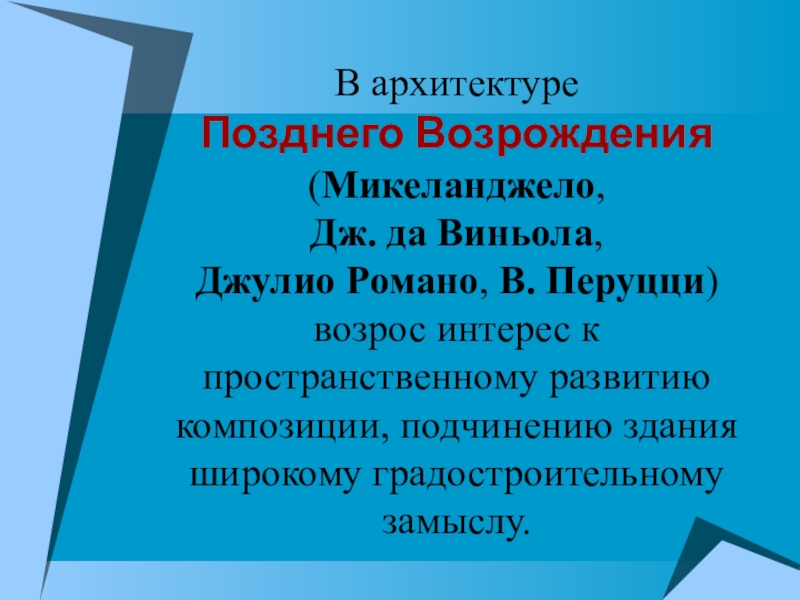 Позднего Возрождения (Микеланджело, Дж. да Виньола, Джулио Романо, В. Перуцци) возрос интерес