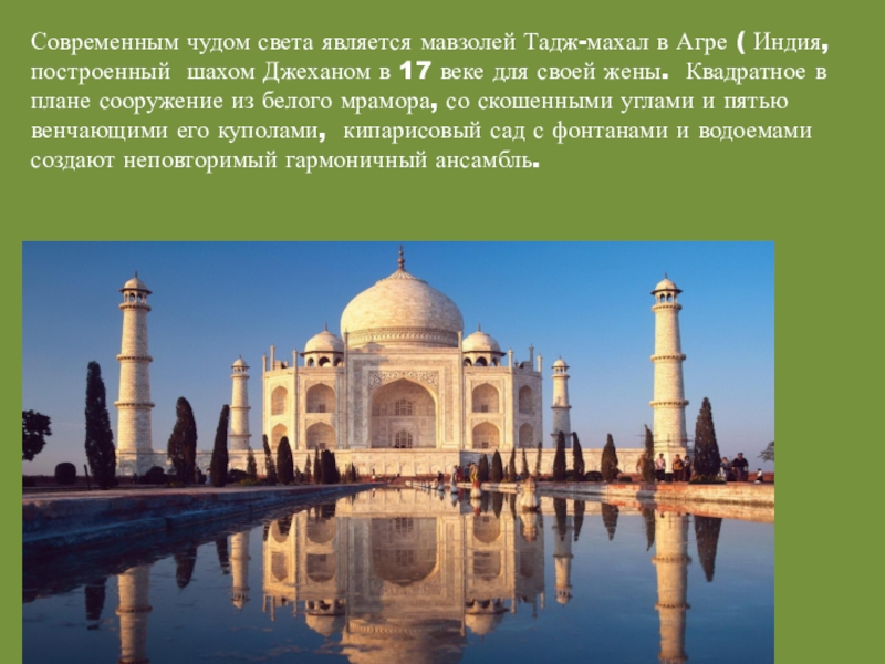 Слайд 68Современным чудом света является мавзолей Тадж-махал в Агре ( Индия,