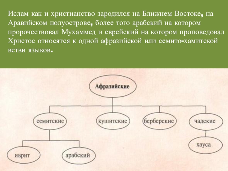 на котором проповедовал Христос относятся к одной афразийской или семито-хамитской ветви языков.