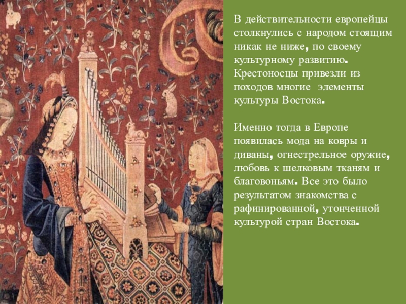 ознакомили Западную Европу с достижениями арабской науки и культуры, переведя труды арабских ученых на латинский язык, а также способствовали торговому обмену между этими регионами.