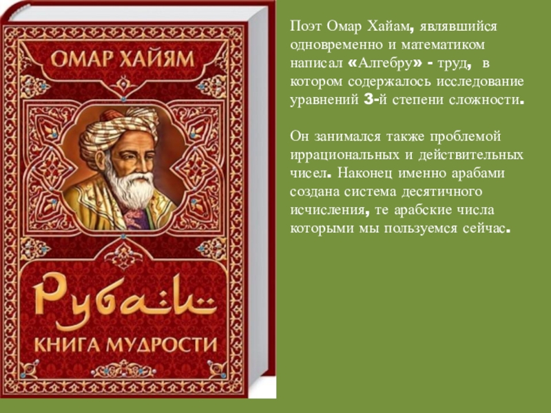 Слайд 84Поэт Омар Хайам, являвшийся одновременно и математиком написал «Алгебру» -