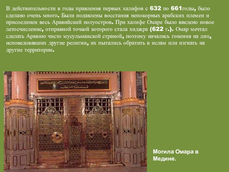 Слайд 24В Ясрибе, в последствии этот город стали называть Мединой (что