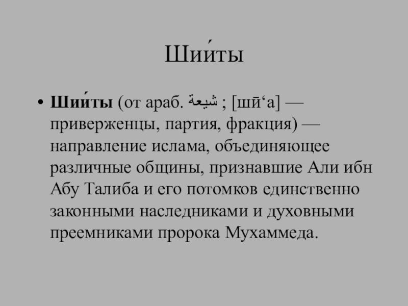 Шии́ты (от араб. شيعة ; [шӣ‘а] — приверженцы, партия, фракция)