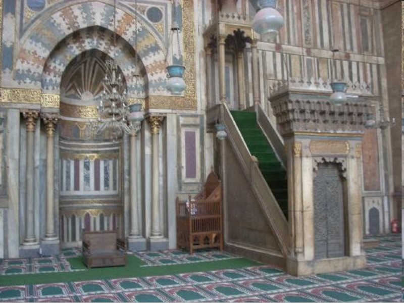 которой имам читает пятничную проповедь. Расположена справа. Первый минбар был