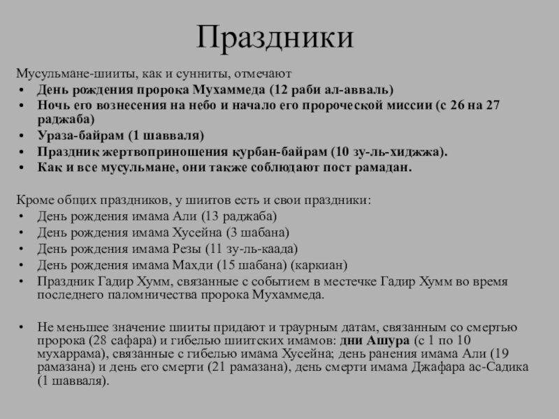 Кроме общих праздников, у шиитов есть и свои праздники: