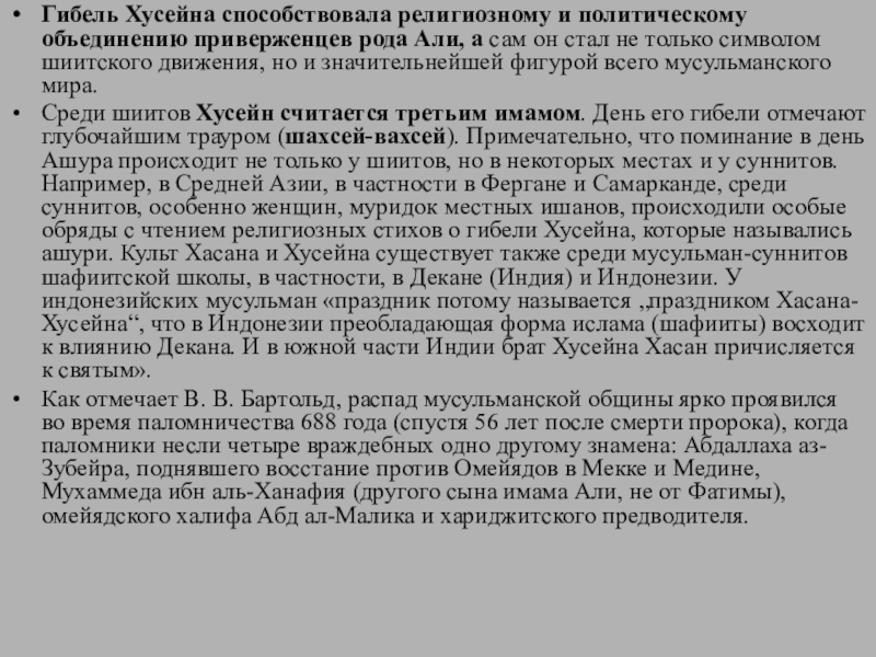 Слайд 12Гибель Хусейна способствовала религиозному и политическому объединению приверженцев рода Али,