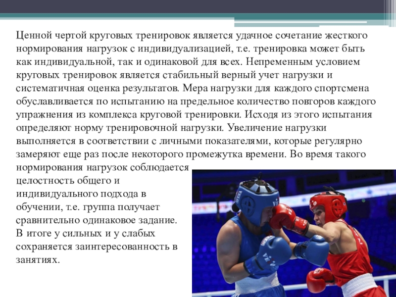 Слайд 7Ценной чертой круговых тренировок является удачное сочетание жесткого нормирования нагрузок