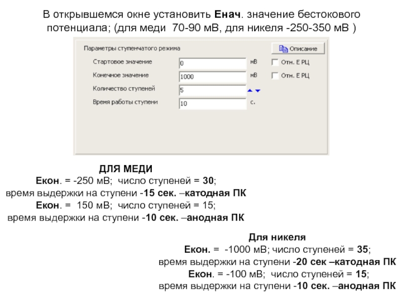 время выдержки на ступени -10 сек. –анодная ПК