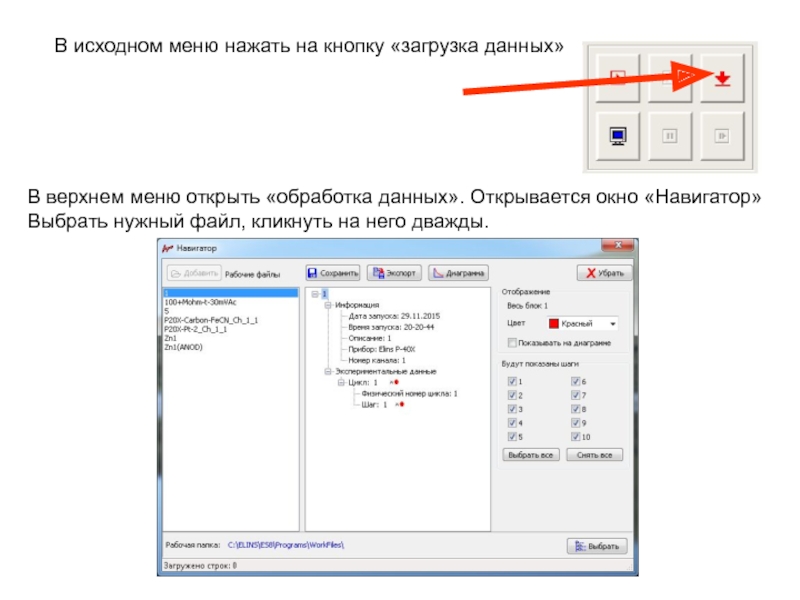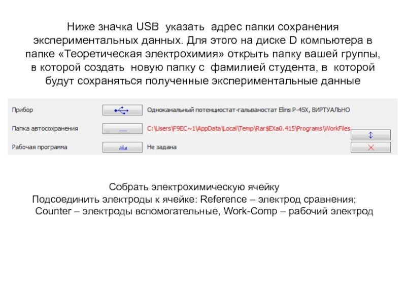 Подсоединить электроды к ячейке: Reference – электрод сравнения;