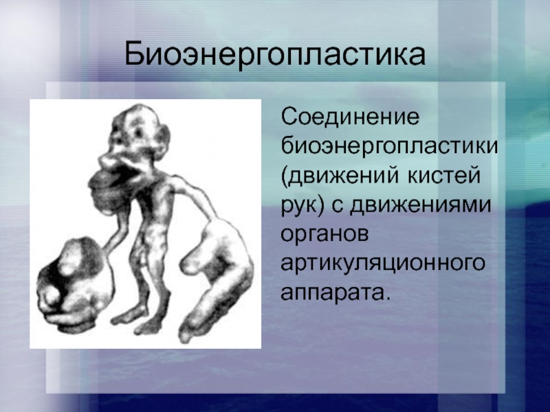 Биоэнергопластика Соединение биоэнергопластики (движений кистей рук) с движениями органов артикуляционного аппарата.