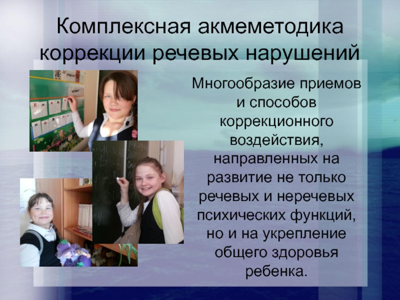 Слайд 11Комплексная акмеметодика коррекции речевых нарушений