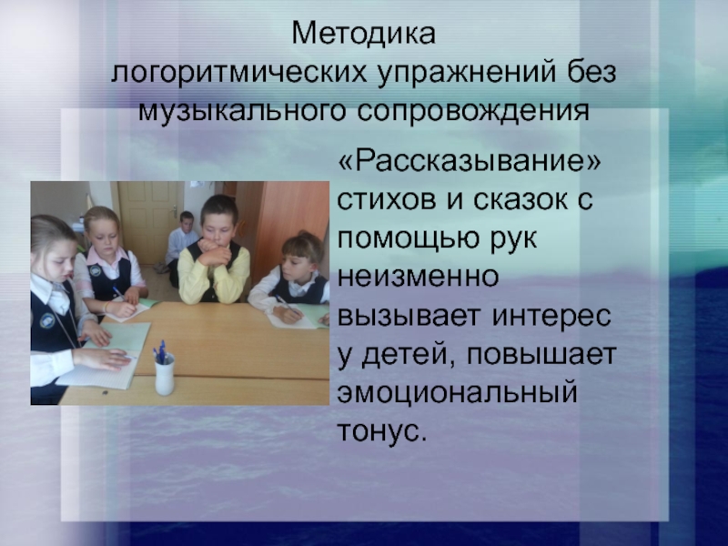 Слайд 5Методика логоритмических упражнений без музыкального сопровождения