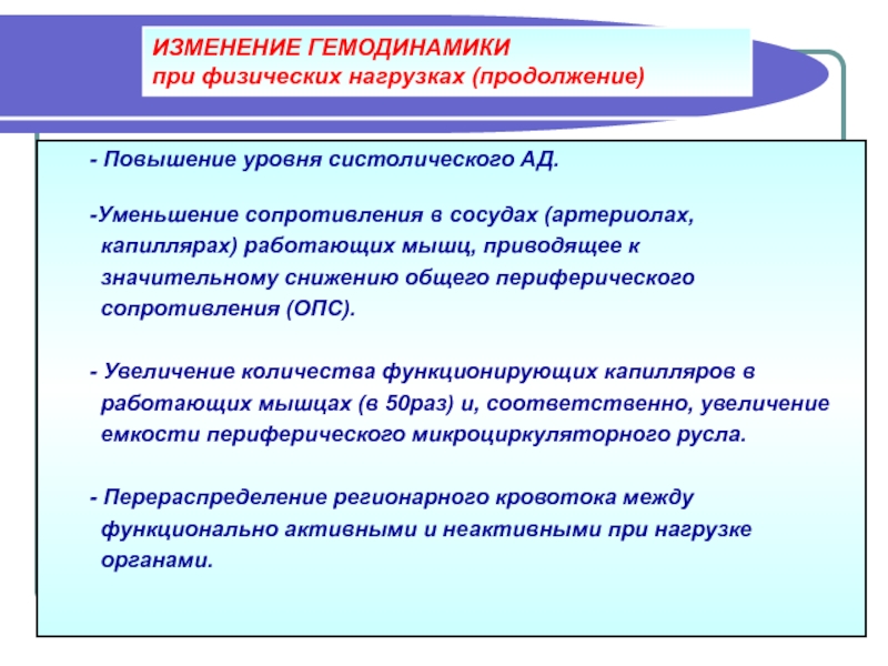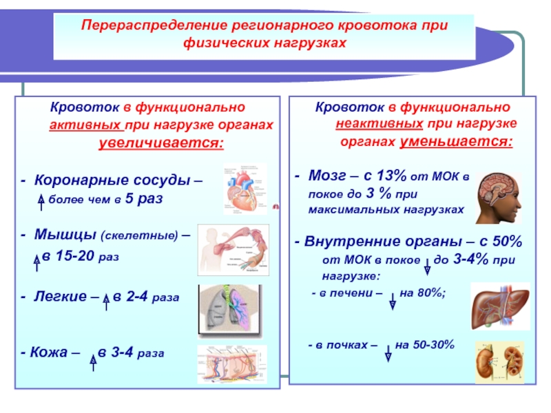 Кровоток в функционально неактивных при нагрузке органах уменьшается:
