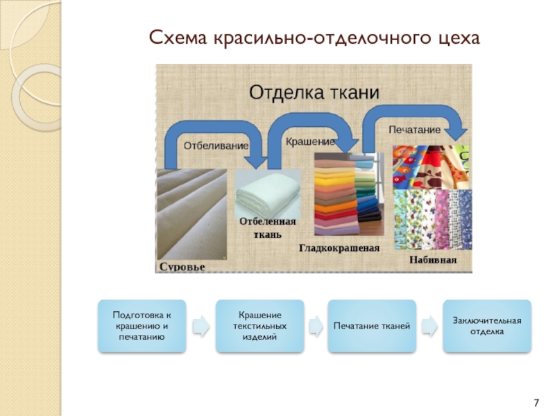 Слайд 7Схема красильно-отделочного цеха