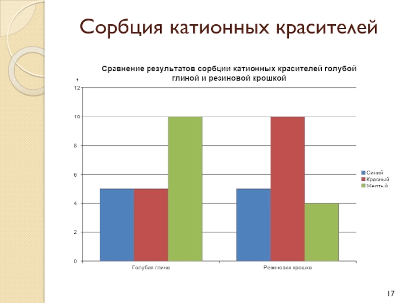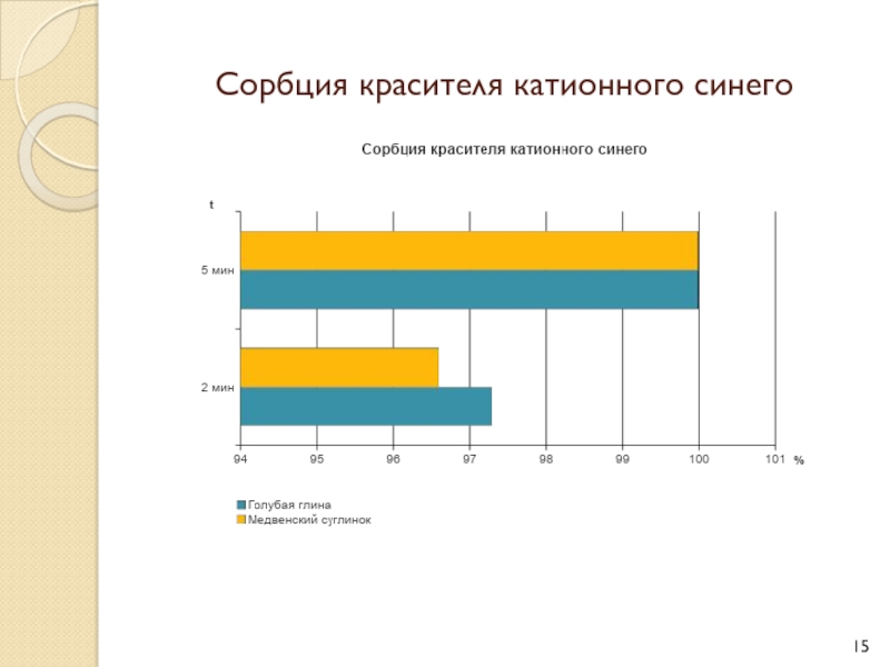 Слайд 15Сорбция красителя катионного синего