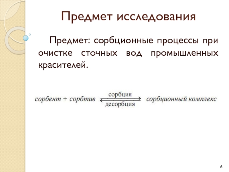 Предмет: сорбционные процессы при очистке сточных вод промышленных красителей.
