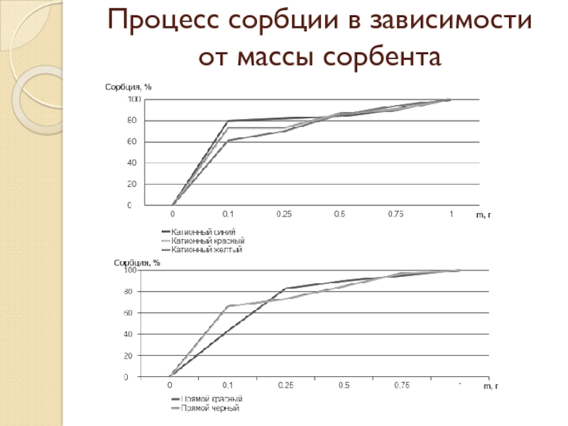 Слайд 22Процесс сорбции в зависимости от массы сорбента