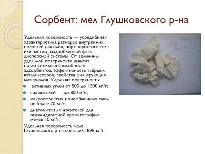 Слайд 19Сорбент: мел Глушковского р-на
