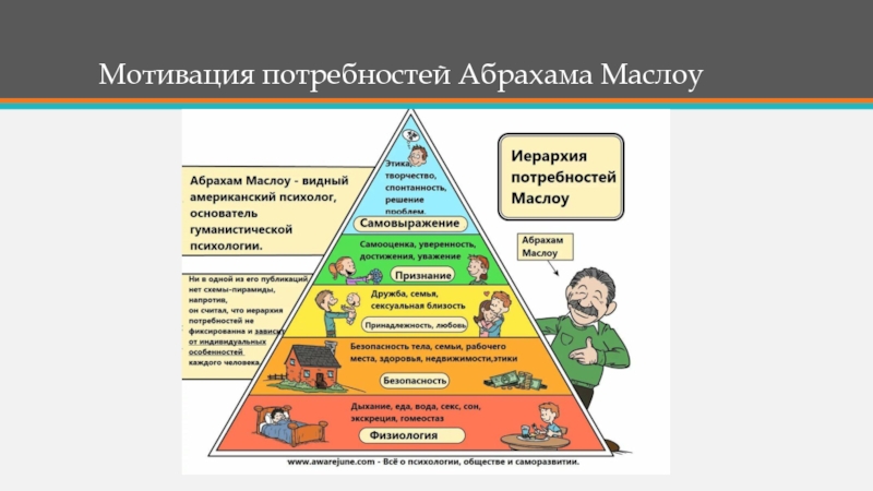 Слайд 4Мотивация потребностей Абрахама Маслоу