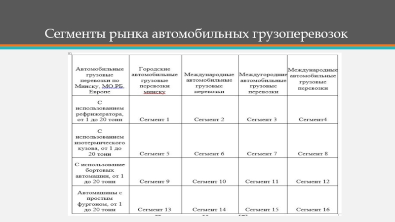 Слайд 8Сегменты рынка автомобильных грузоперевозок