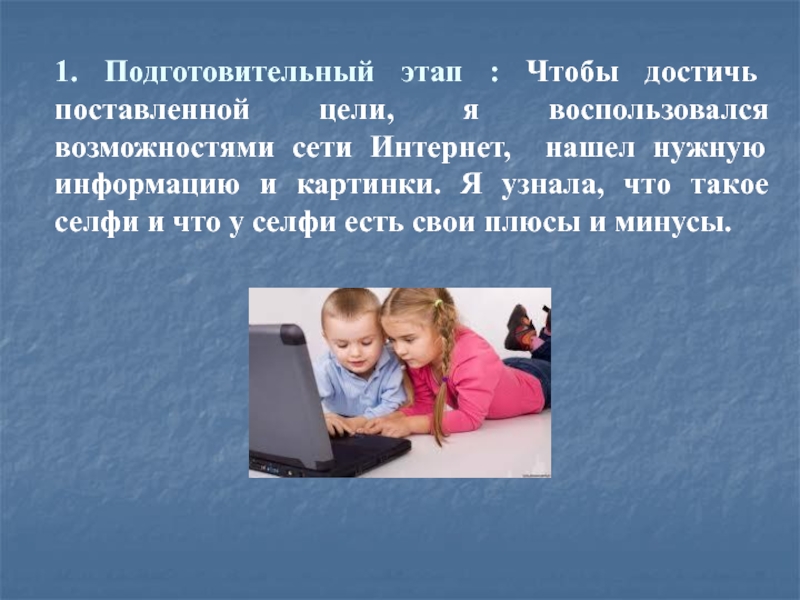 Слайд 81. Подготовительный этап : Чтобы достичь поставленной цели, я воспользовался