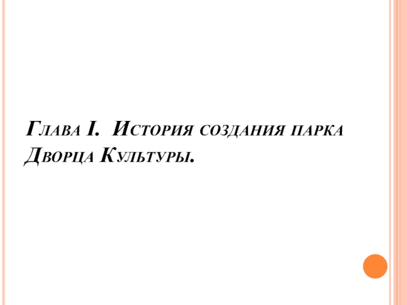 Слайд 4Глава I. История создания парка Дворца Культуры.