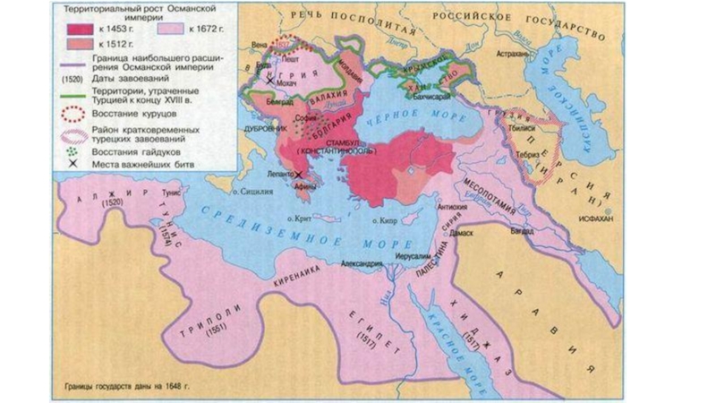 2. Покажите на карте территории, захваченные турками-османами в