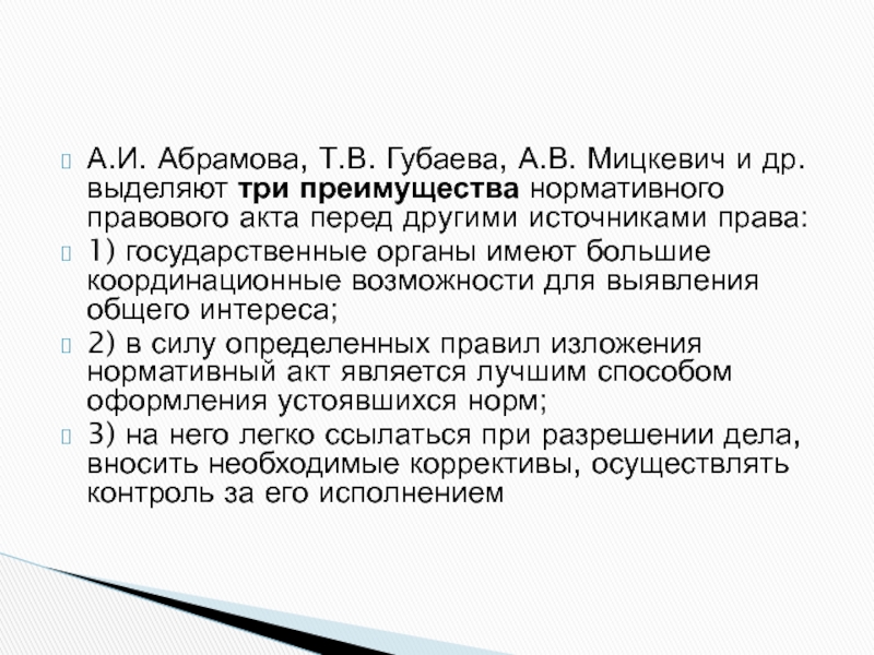 Это наиболее совершенный источник права, создающий основу для четкости и стабильности правового регулирования, укрепления законности, доступности и обозримости правовых предписаний.