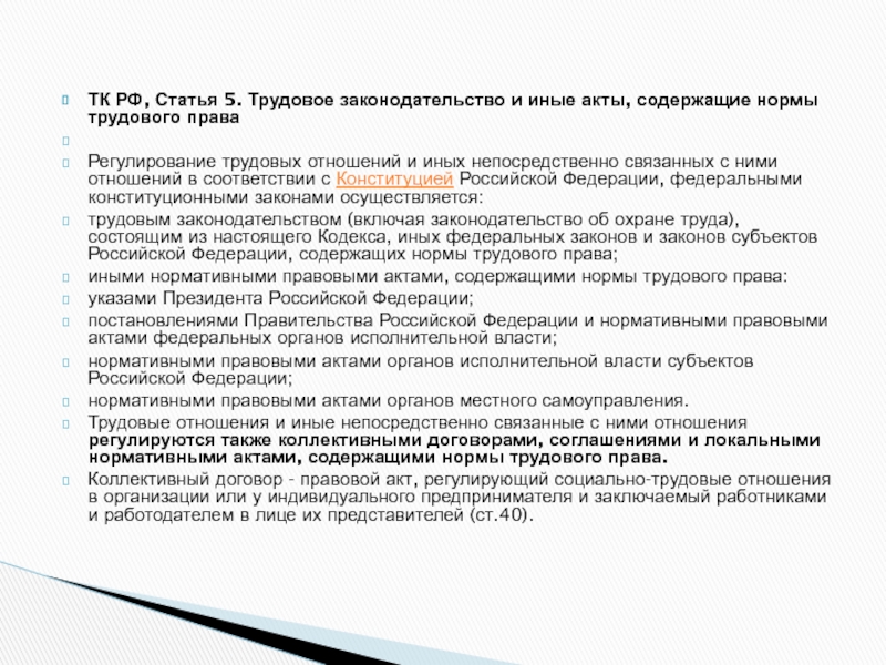 Слайд 13ТК РФ, Статья 5. Трудовое законодательство и иные акты, содержащие