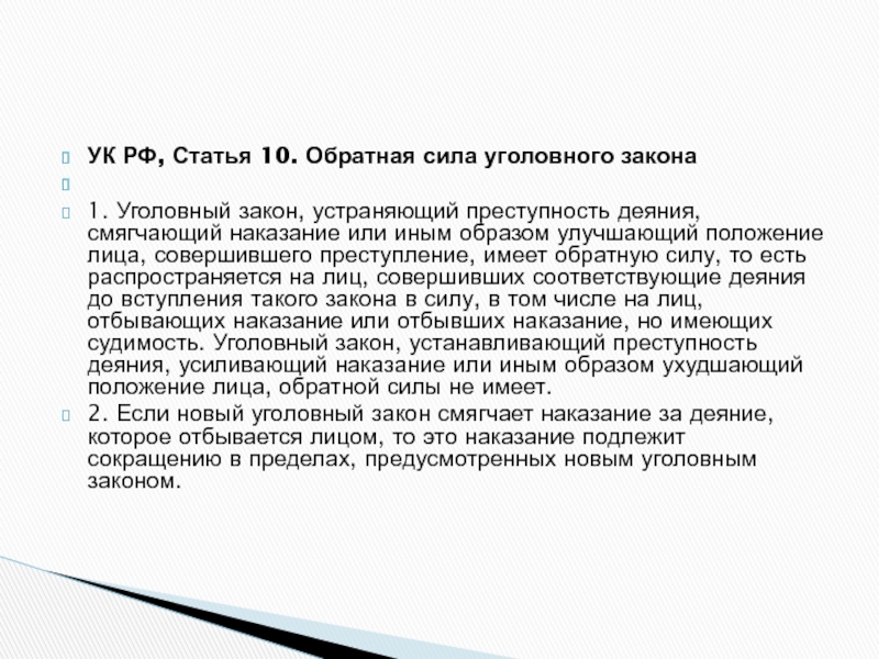 Слайд 68УК РФ, Статья 10. Обратная сила уголовного закона