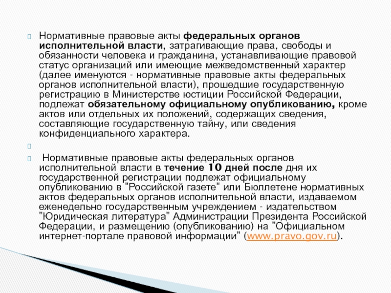Слайд 60Нормативные правовые акты федеральных органов исполнительной власти, затрагивающие права, свободы