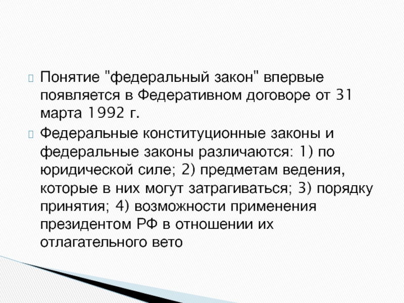 Слайд 77Федеральные законы о ратификации международных договоров и федеральные законы об