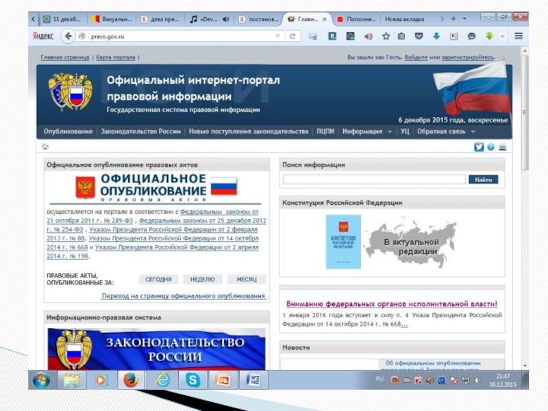 в "Российской газете", Собрании законодательства Российской Федерации и на "Официальном интернет-портале правовой информации" (www.pravo.gov.ru), функционирование которого обеспечивает Федеральная служба охраны Российской Федерации.